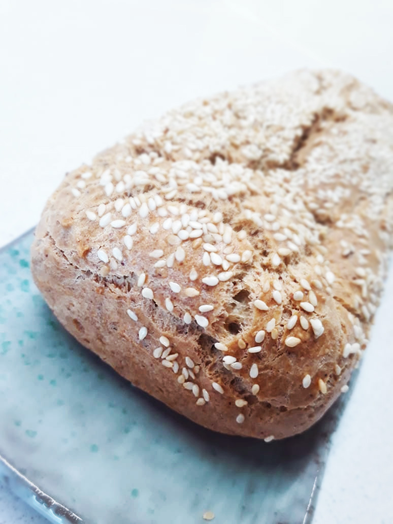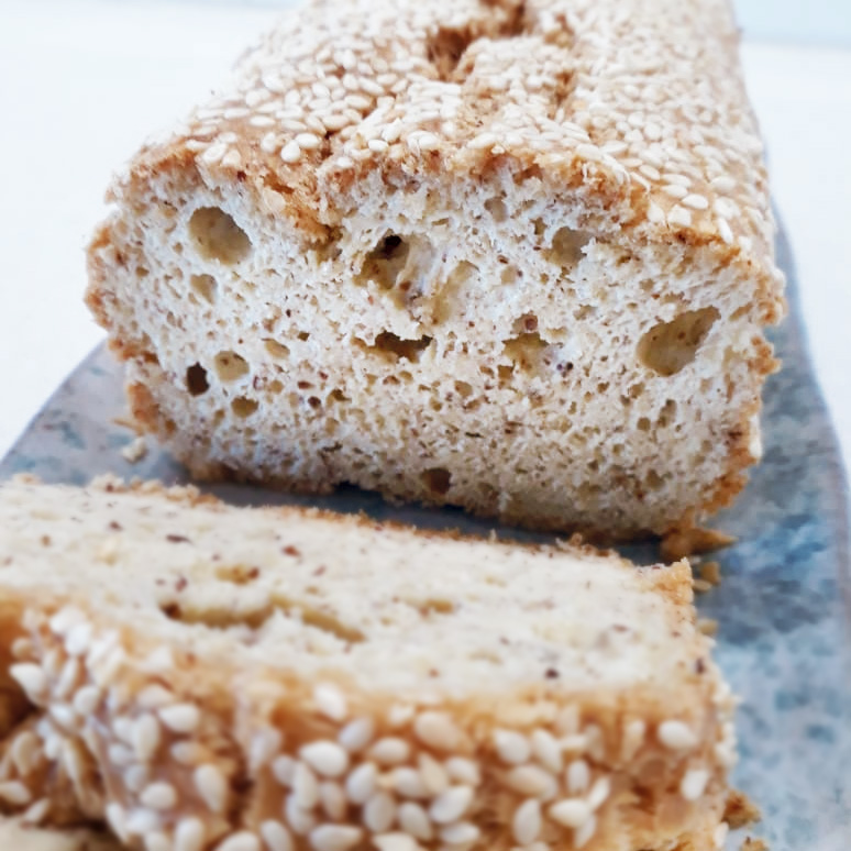 Hoy estamos aquí reunidos por esta belleza: un pan de harina de almendras, sin gluten y con pocos ingredientes.